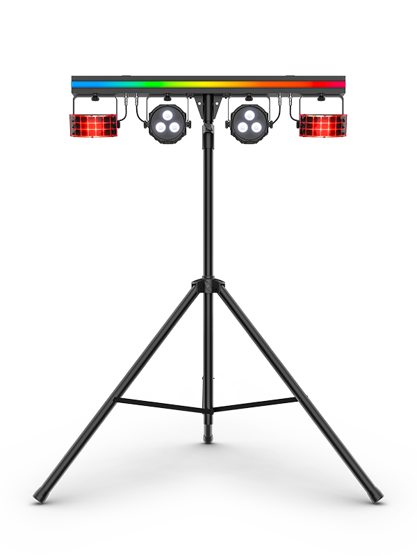 GigBar 3 ILS brings on the good times fast with Instant Light Show technology that wirelessly syncs multiple fixtures of different types. Get in and out quickly, and spend less time on setup, with an ILS-compatible 3-in-1 pack-n-go kit that comes with tripod, wireless footswitch and carry bags. GigBar 3 ILS includes an LED strip for eye-candy effects, LED pars for color wash coverage, and LED derbies that send multicolored chasing beams across the dancefloor. Add up to 4 additional fixtures to create your own custom mobile lighting setup.