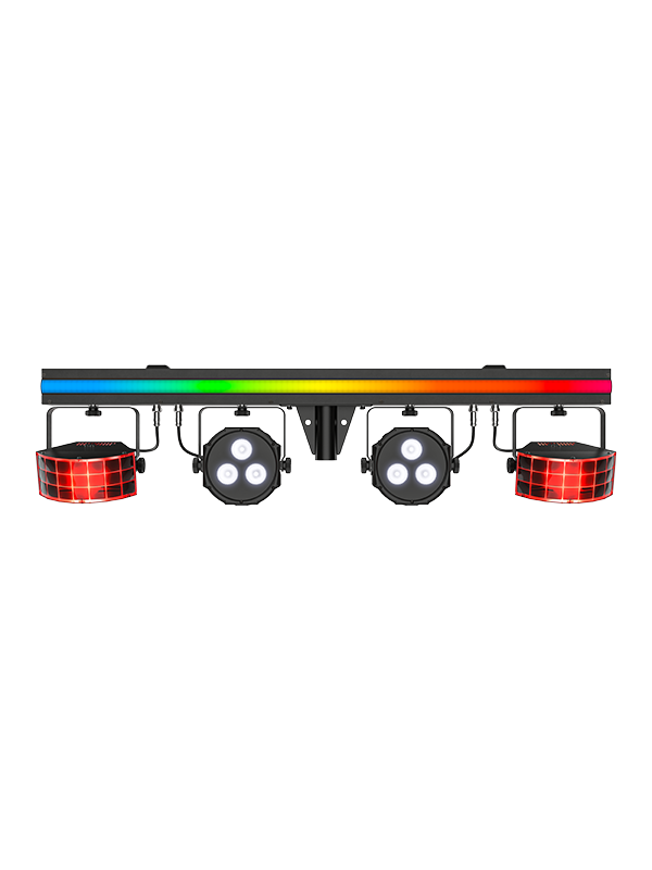 3-in-1 light that includes a pair of LED derbies, LED pars, and an LED strip, all mounted on one bar