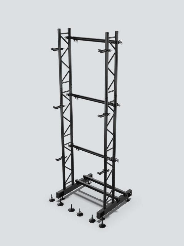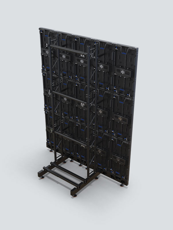 The Ground Support is a proper and safe ground support/stacking system for professional video wall setups. It utilizes the new dual function rig bars to provide a clean, setup for your clients, and is capable of supporting up to 15 video panels of Vivid or F-series Panels. Ships in road case with internal dividers to aid in the fast setup of the system for production/rental events.