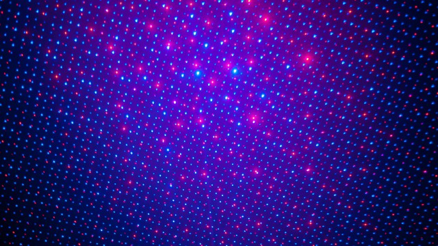 Compact laser projects thousands of red and blue laser beams